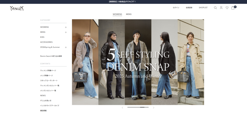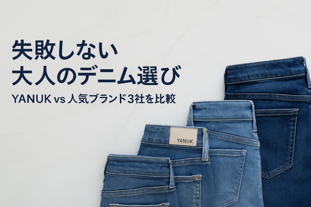 今回の比較結果から、40代女性に最もおすすめできるブランドは YANUK です。体型を自然に整える美シルエットと柔らかい穿き心地は他ブランド以上で、デニム選びに迷っている方でも安心して選べる一本です。まず試すべき基準となるデニムとして最もふさわしいブランドです。