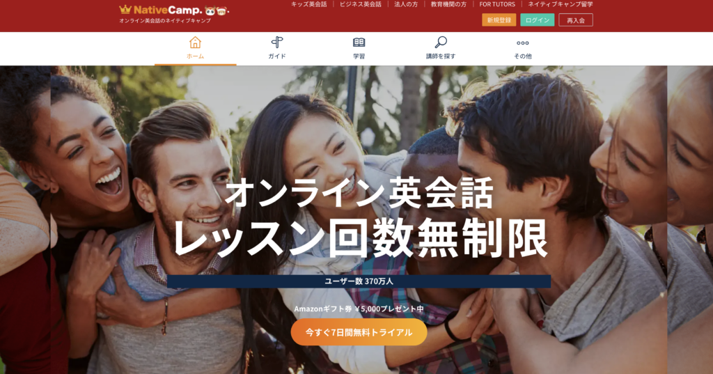 ネイティブキャンプは、回数無制限でレッスンを受けられる「受け放題」スタイルが特徴のオンライン英会話サービスです。思い立ったときにすぐレッスンを受けられるため、英語を話す機会をとにかく増やしたい人には魅力があります。